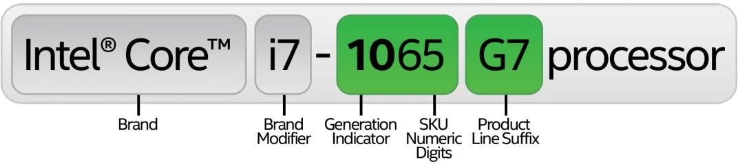 Intel Core Prozessorserien enthalten einen Markenmodifikator vor den übrigen Teilen der Modellnummer. Intel Pentium und Intel Celeron Prozessoren verwenden diese Namenskonvention nicht. Heute umfasst die Intel Core Prozessorserie die Markenmodifikatoren i3, i5, i7 und i9. Höhere Brand Modifier-Nummern bieten ein höheres Leistungsniveau und in einigen Fällen zusätzliche Funktionen (wie die Intel Hyper-Threading-Technologie). Innerhalb einer bestimmten Prozessorfamilie ist beispielsweise ein i7 leistungsfähiger als ein i5, der wiederum leistungsfähiger als ein i3 ist.